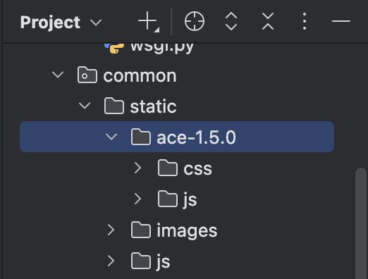 一、下载ace.js离线包,并复制到django的静态资源目录下