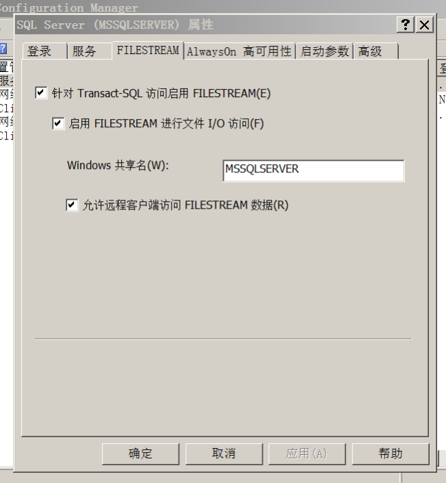 4. SQL Server属性对话框 –> FILESTREAM 选项卡
