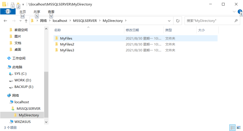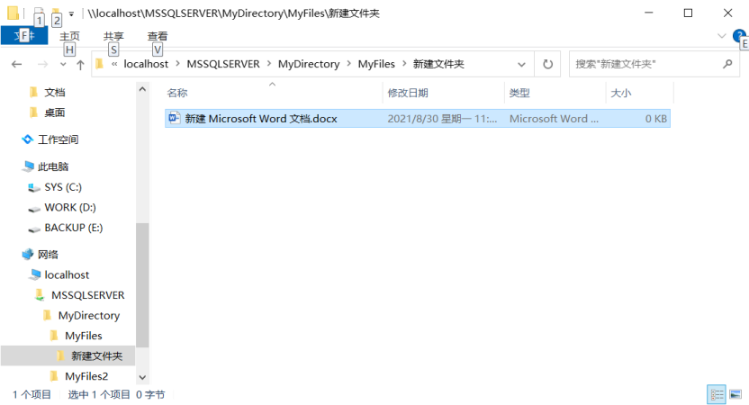 打开文件资源管理器,SQL SERVER资源管理器。在文件资源管理器中修改此共享文件夹的内容,例如创建子文件夹,新建文件,文件夹/文件改名,复制、粘贴,删除等所有操作,都会同步变化到SQL SERVER资源管理器(刷新)里。