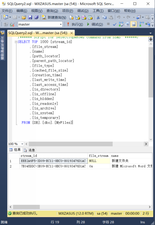 FILENAME = 'C:\DB\DBMDFStream') -- C:\DB路径下MyFileStream文件夹必须不存在