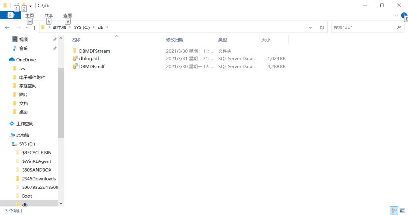 在文件资源管理器里打开刚才创建的数据库胡目录,C:\DB会看到: