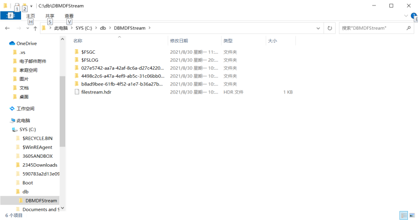 这里看的创建创建胡文件表所对应的FILESTREAM,为了提高性能,他们是独立于数据库文件单独存放的。